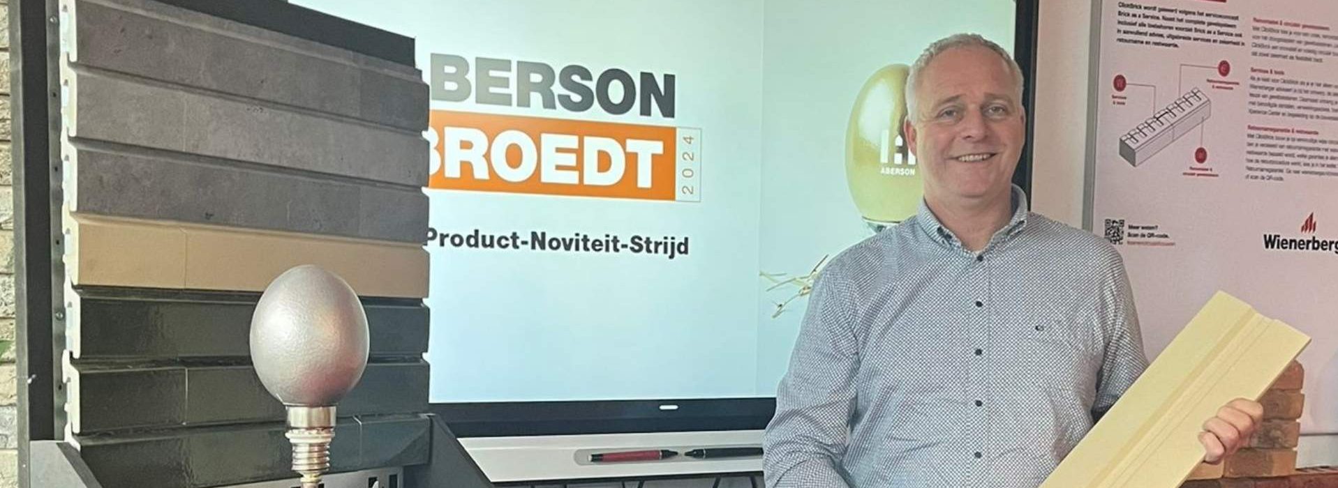 Aberson Broedt, de product-noviteitstrijd voor het meest innovatieve idee voor een nieuw Aberson product. Het winnende idee van Aberson Broedt 2024: de Argeton strip van 450 mm voor ons circulaire A-Brick gevelsysteem, bedacht door onze eigen technisch adviseur Mark Nijland. We zijn inmiddels ruim een jaar verder. Hoe staat het ervoor met deze langere steenstrip?