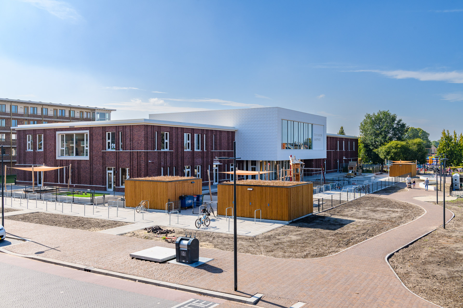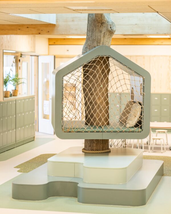 In het kindcentrum is breed ingezet op biobased materialen, waaronder hout in het interieur, biobased isolatie en duurzame dak- en vloersystemen. Circulariteit is daarbij niet alleen technisch benaderd, maar ook zichtbaar en beleefbaar gemaakt.