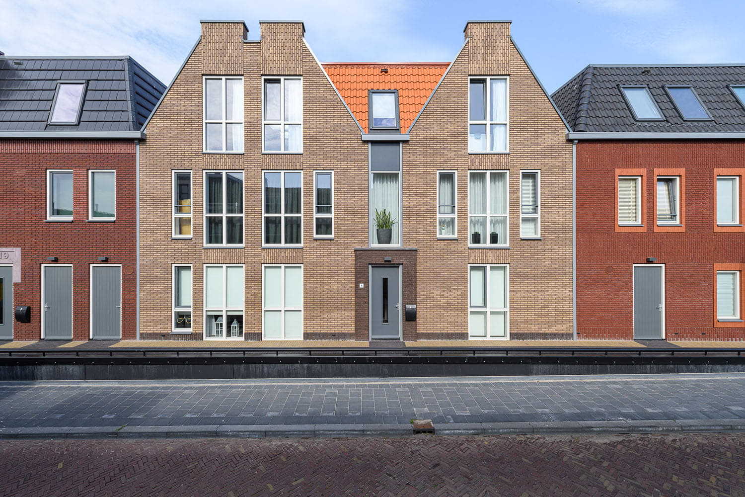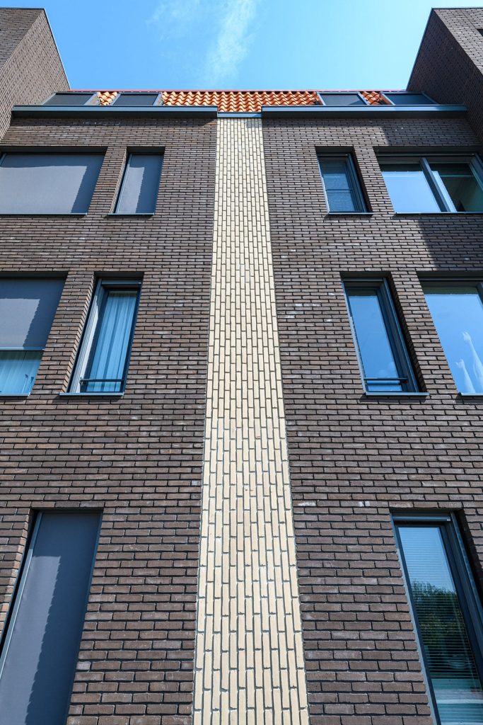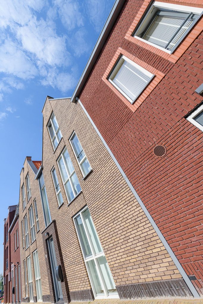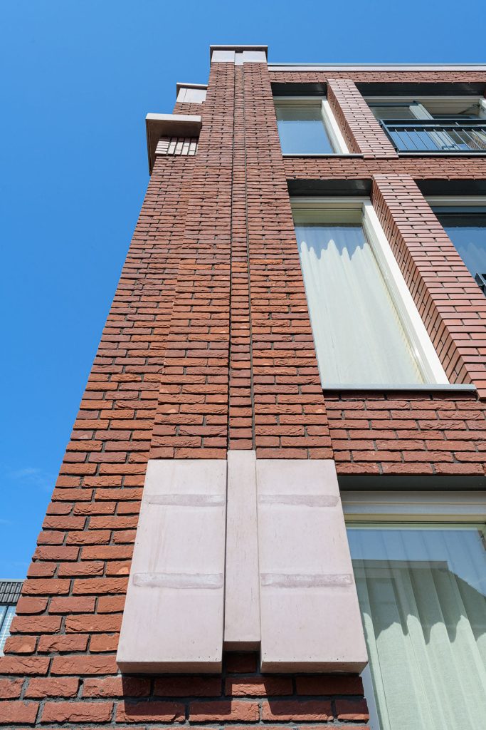 In Uitgelicht vertelt de architect over de keuze voor de stenen en de bijzondere detailleringen die ze aanbrachten. Zoals schuingemetselde kaders of penanten die schoorstenen lijken te zijn. Jan-Otto Schilstra: ‘Het geeft een hele doorwerkte detaillering zoals je die ook in het oude centrum van Harlingen ziet.’
