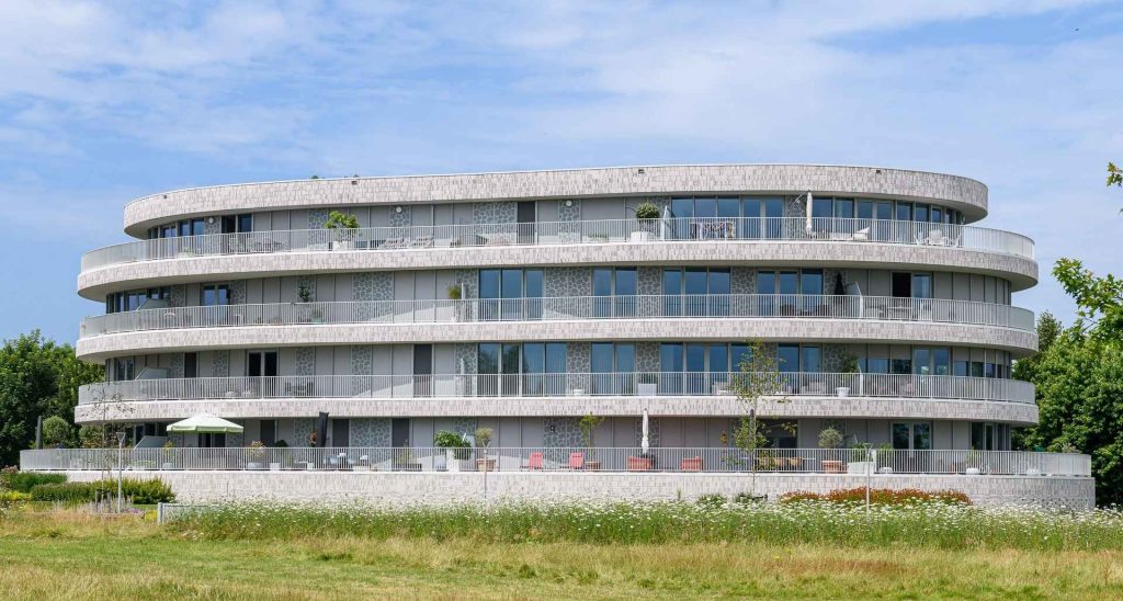 Speciaal voor dit project is gekozen voor een combinatie van gevelstenen die subtiele overgangen mogelijk maakt tussen verschillende delen van de bebouwing. De vormgeving vraagt om maatwerk in zowel verwerking als detaillering. Dit werd gerealiseerd in nauwe samenwerking tussen architect, aannemer en Aberson als leverancier. In de gevel en in het dak zijn verschillende nestmogelijkheden voor insecten en vogels geïntegreerd.