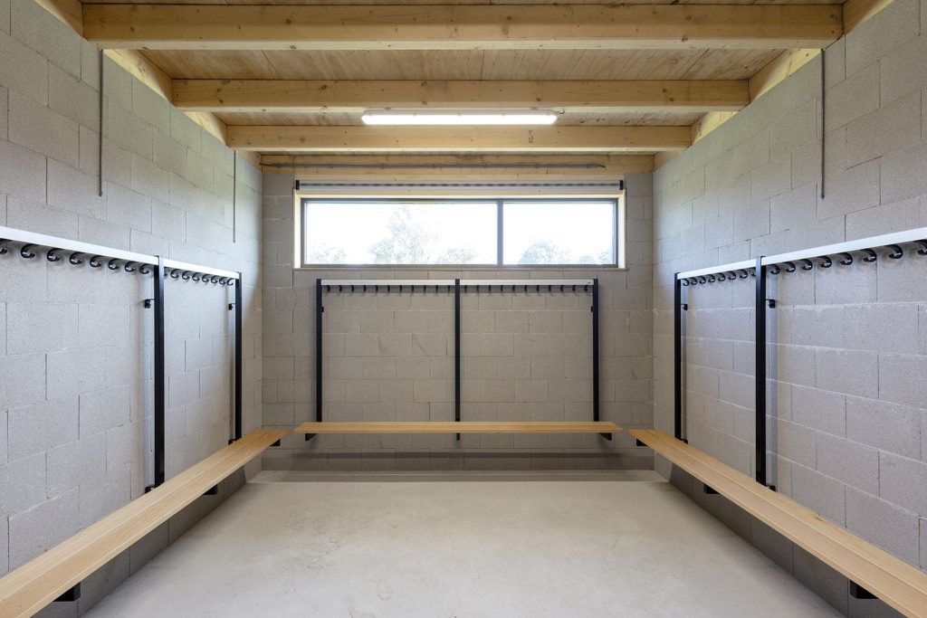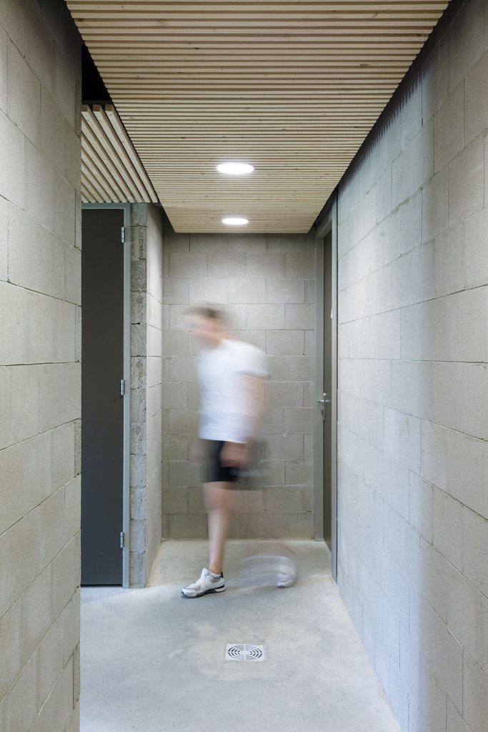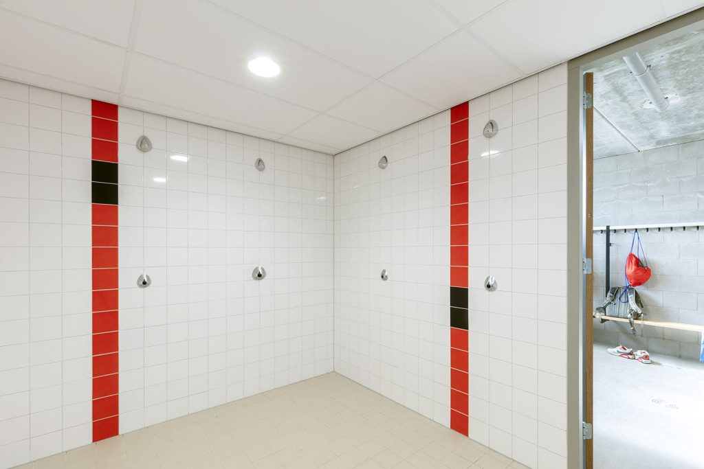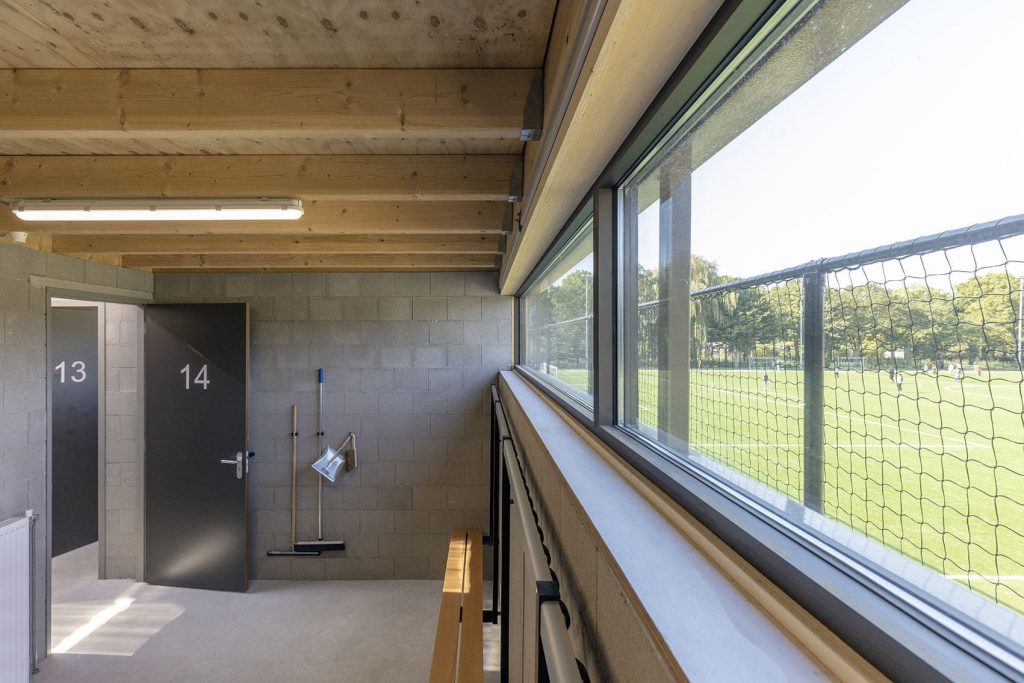 ‘Dat was best een opdracht. Om met een klein budget de geliefde sfeer van de kleedkamers te behouden, meer volume te creëren en er óók nog architectuur in te krijgen. Daar zijn we met zijn allen wel een jaar of vier mee bezig geweest. Ik kreeg een ingeving: ‘Wat nou als we in de bestaande materialen blijven, dus betonsteen met hout?’ Vervolgens kwam Tim (Ronde, adviseur bij Aberson) met het idee om naar vuilwerkstenen te kijken. Dat bleek een geniale zet.’