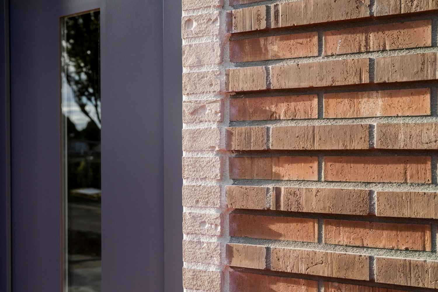 “Voor de woningfabriek van Van Wijnen zijn speciale steenstrips ontwikkeld, in afwijkende maten. Een nieuw soort steenstrips, van 14 mm tot en met 40 mm dikte en in elf verschillende kleuren. Een product dat tot nu toe nog niet gerealiseerd, laat staan toegepast kon worden. Hiermee is de variatie die esthetisch gemaakt kan worden in de geautomatiseerde gevels vele malen groter geworden. Door de inzet van dikte verschil, liggend en staand metselwerk, vlakverdelingen, kaders en randen kan er veel verfraaiing in de detaillering van de gevel gemaakt worden. Dat is zowel voor architecten als eindgebruikers erg interessant. Dit soort variaties in metselwerk zijn in de traditionele bouw heel kostbaar door de extra tijd die het kost.”